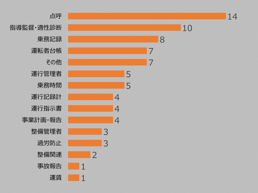 中国運輸局の監査 2023年1月~2月 運転者への指導監督実施or記録義務違反がワースト1位