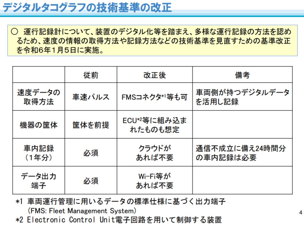 デジタルではなく、アナログ含む運行記録軽の装着範囲が、総重量7tまで拡大されました。