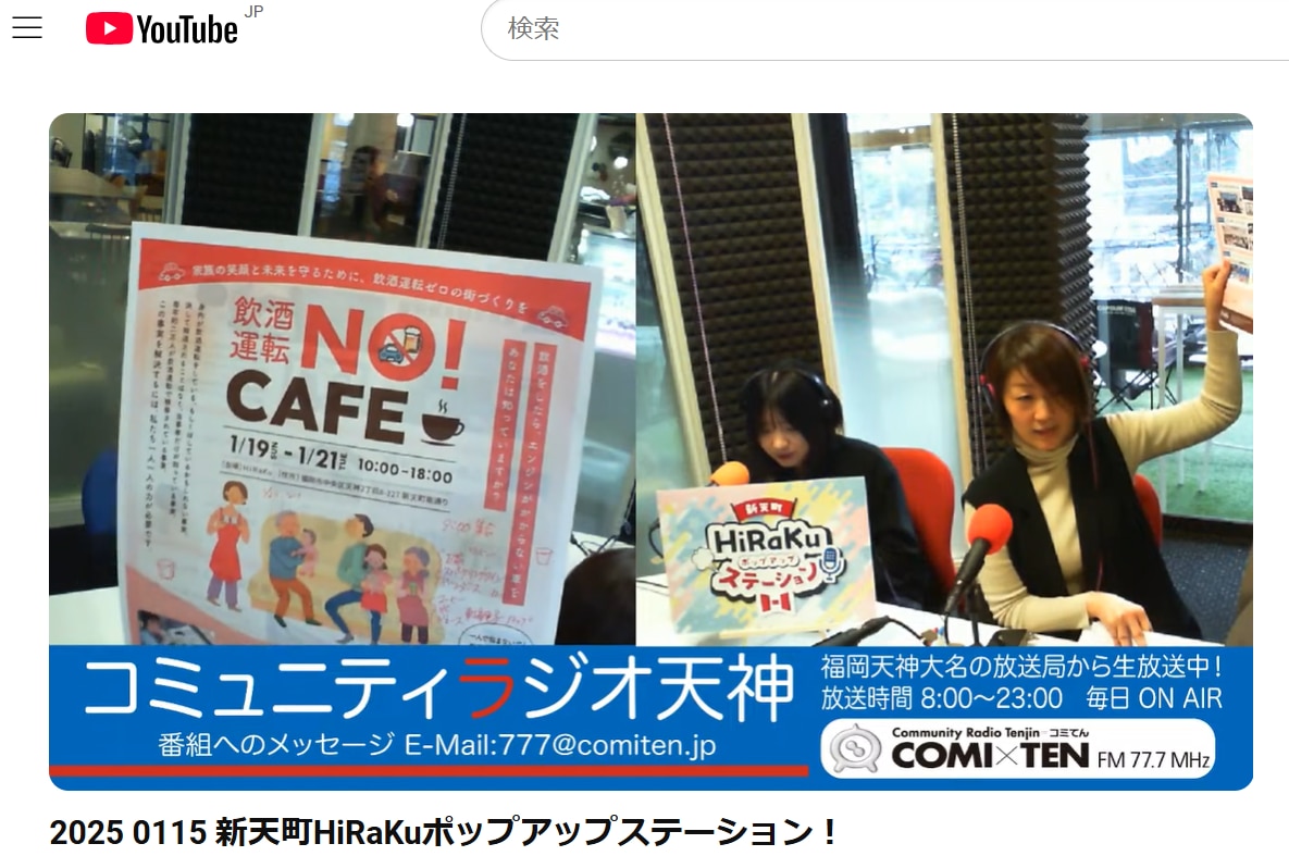 福岡のコミュニティFM放送局「コミてんラジオ」にて「飲酒運転NO!CAFE」イベントが紹介されました