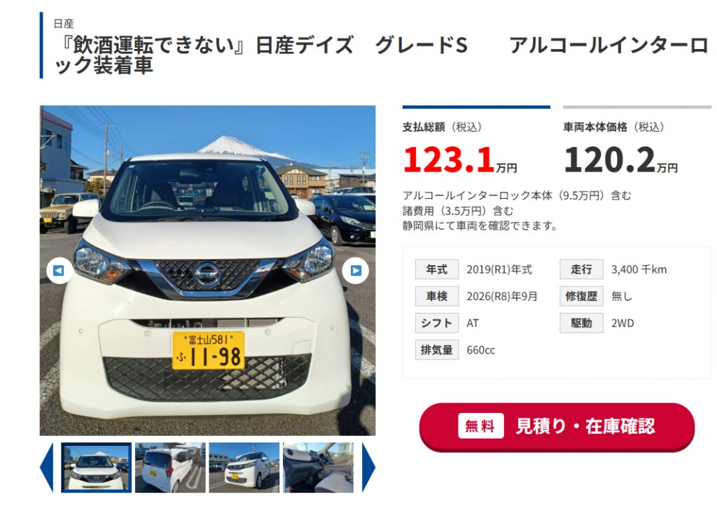 この2車種以外にも、「この中古車が飲酒運転できないクルマだったら買いたい」そんな車種があれば気軽にご連絡ください。