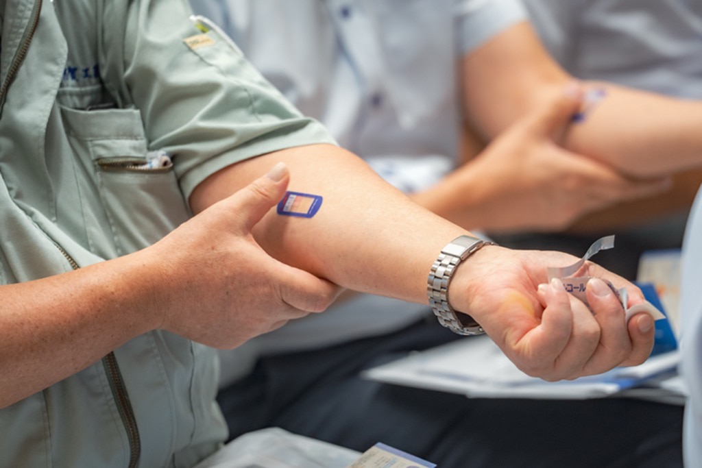 講義のあとには、ご参加されたみなさまに、ご自身の体がお酒が飲める体質かを判定できる試験パッチをお試しいただきました。