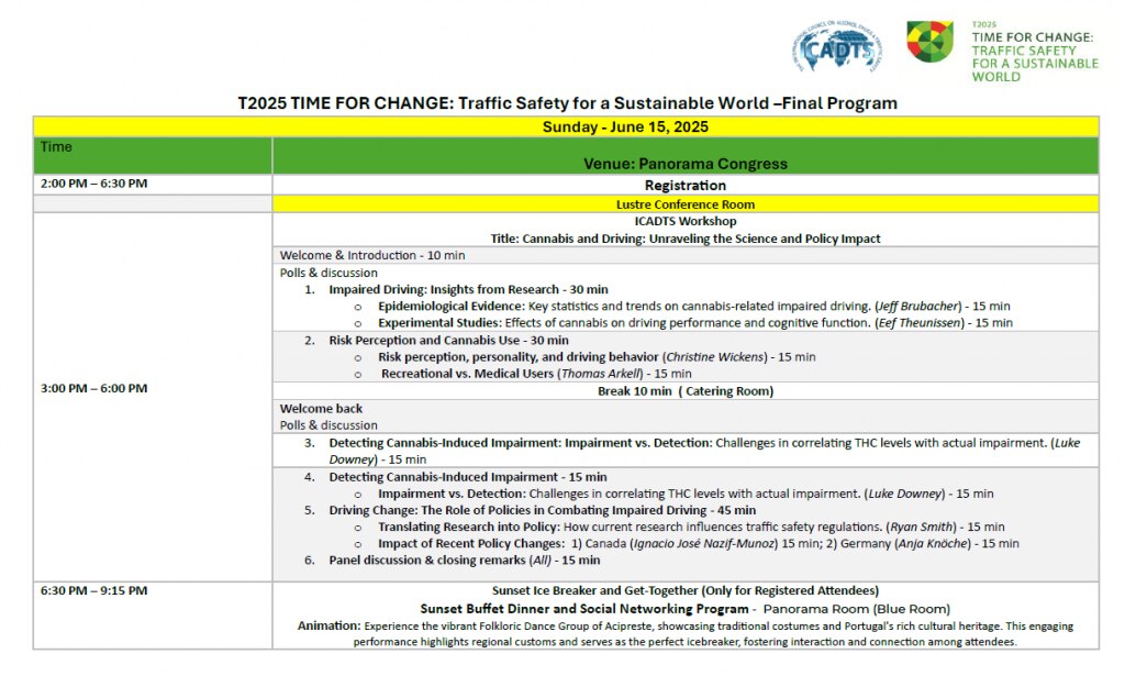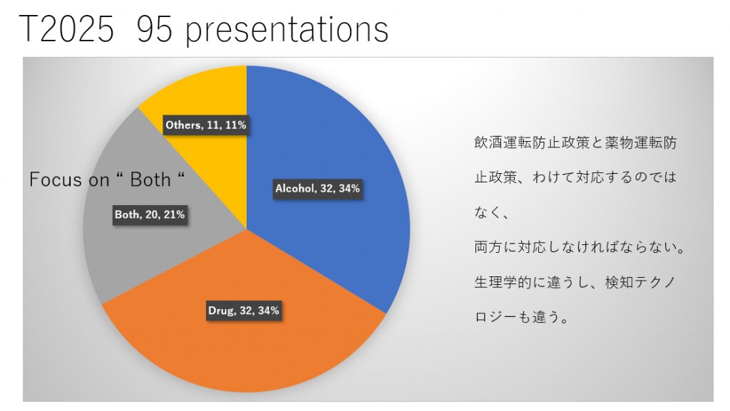 T2025とは、ICADTSというNPO団体が主催する、3年ごとに行われる、「飲酒運転・薬物運転」に特化した国際会議の名称です。開催年にTをつけて、今年は ”T2025” という大会でした。