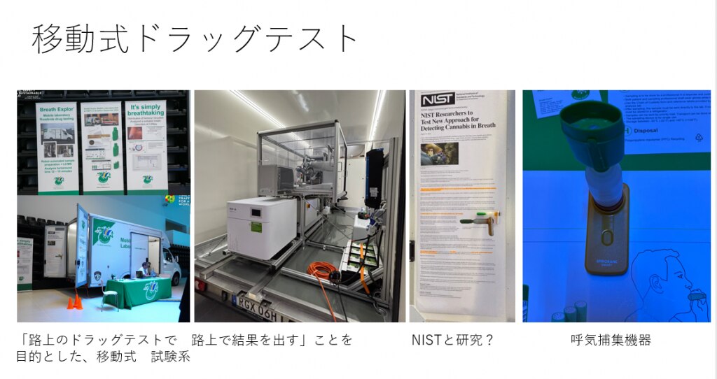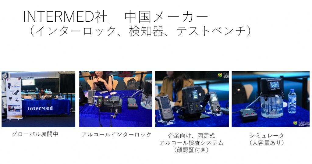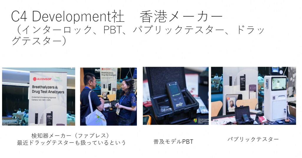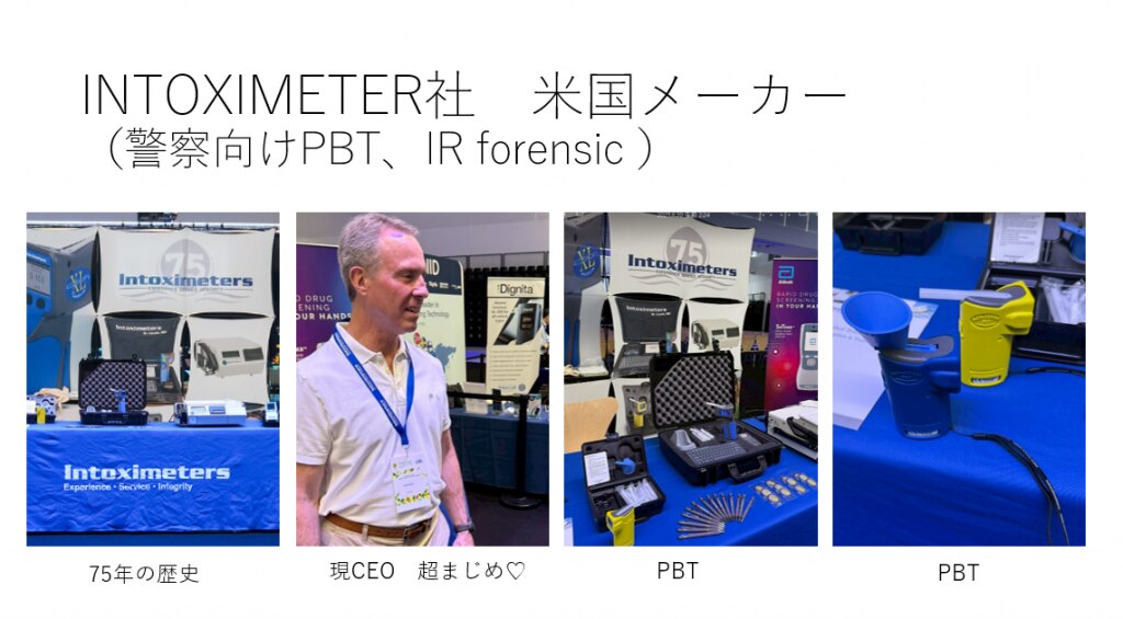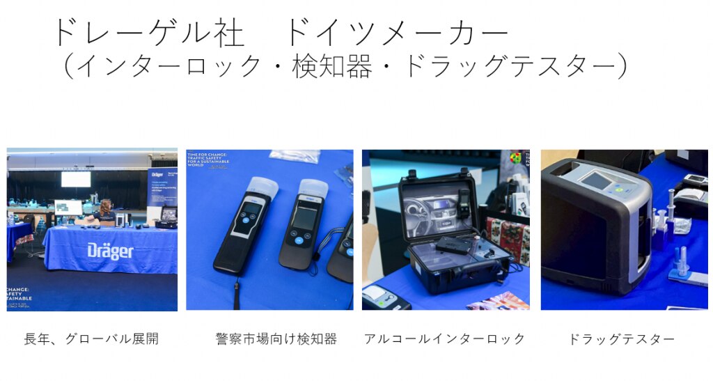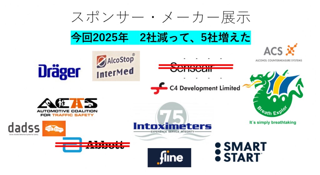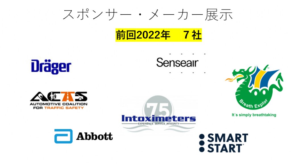 ワークショップや会議にはだいたいスポンサーがつきますよね。スポンサーは、だいたいがそのテーマに関連する機器やシステムです。薬物運転と飲酒運転がテーマですので、スポンサー展示(メーカー))は、