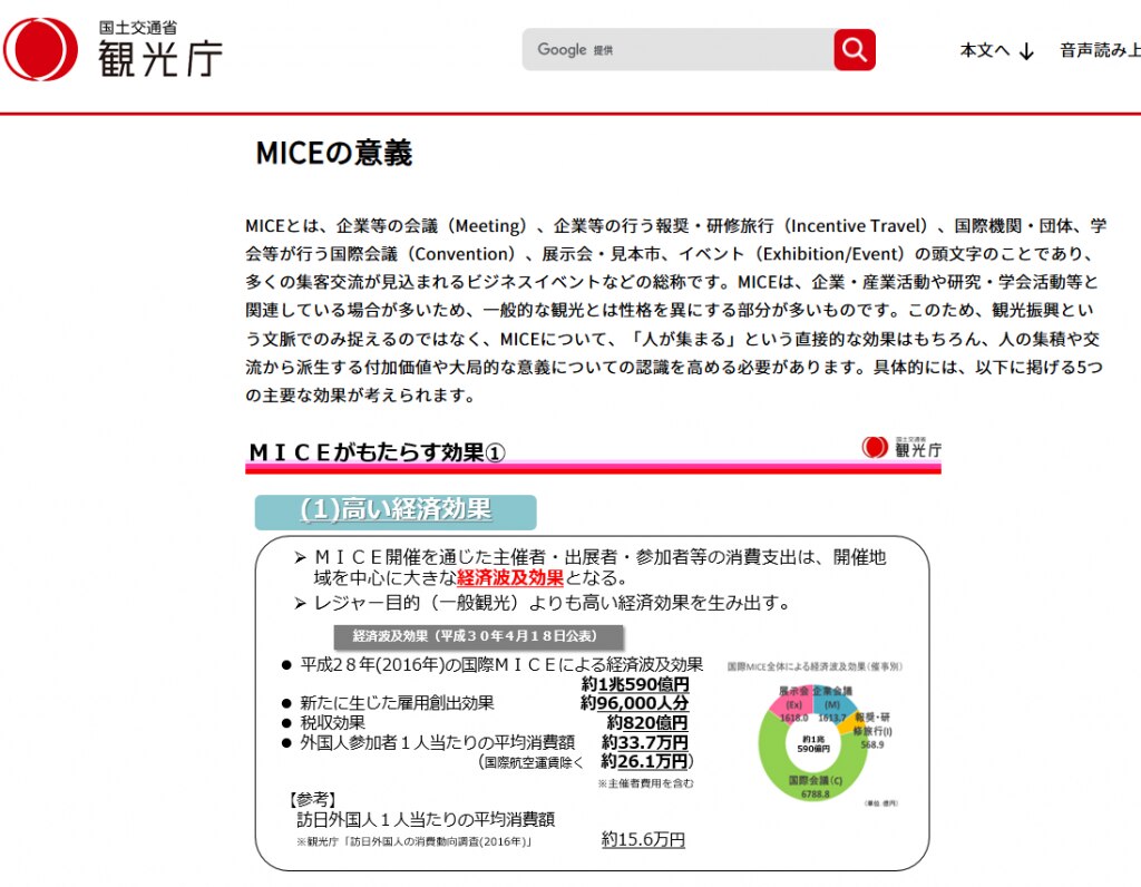 MICEについて、「人が集まる」という直接的な効果はもちろん、人の集積や交流から派生する付加価値や大局的な意義についての認識を高める必要があります