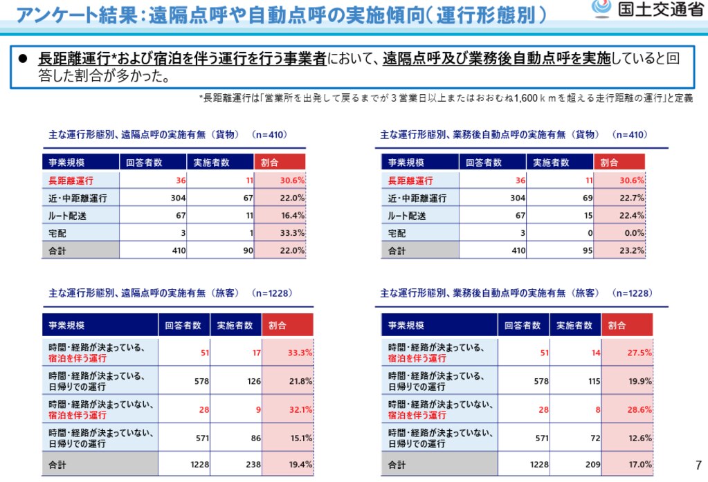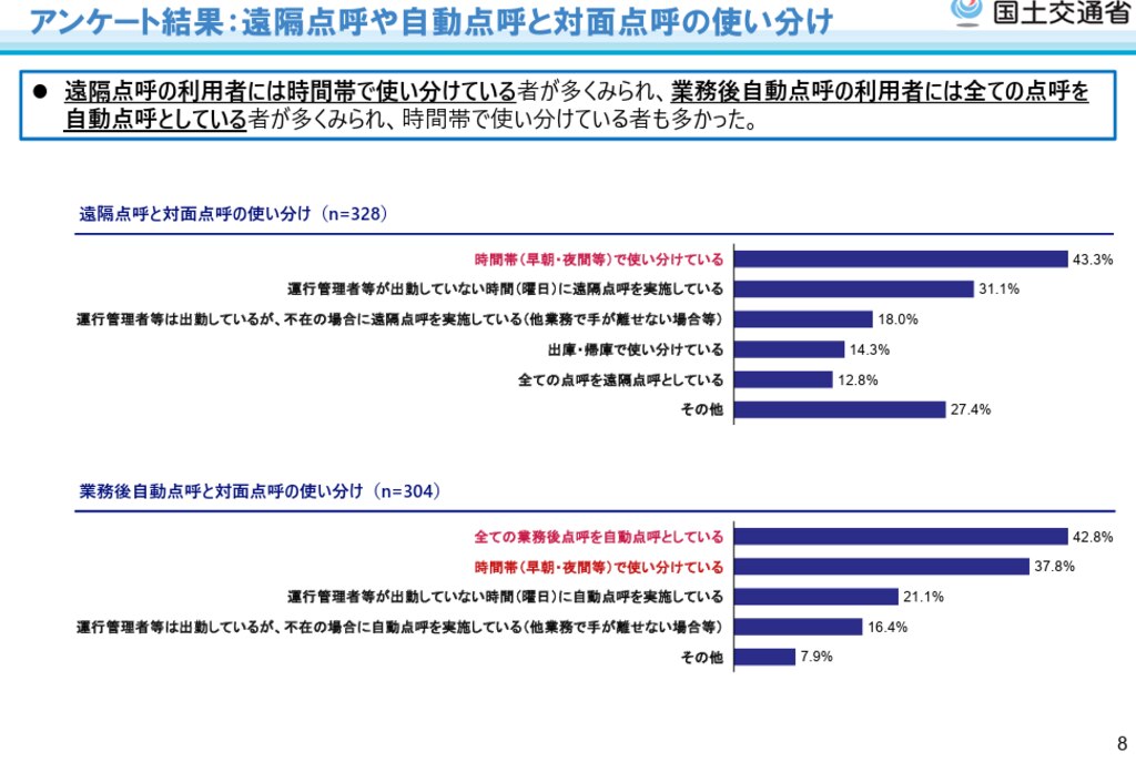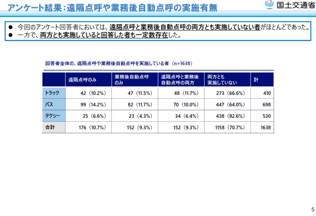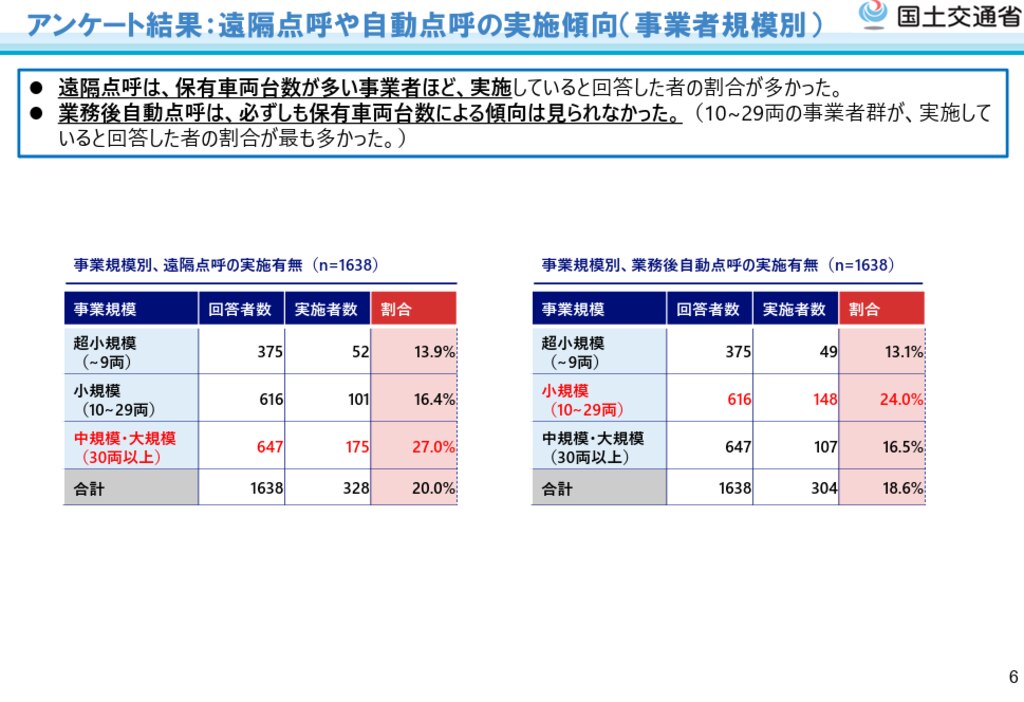 同一事業者内遠隔点呼及び業務後自動点呼の実施状況に係る実態調査