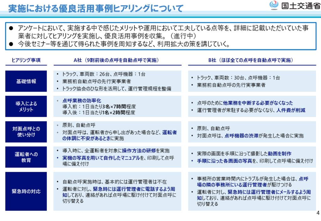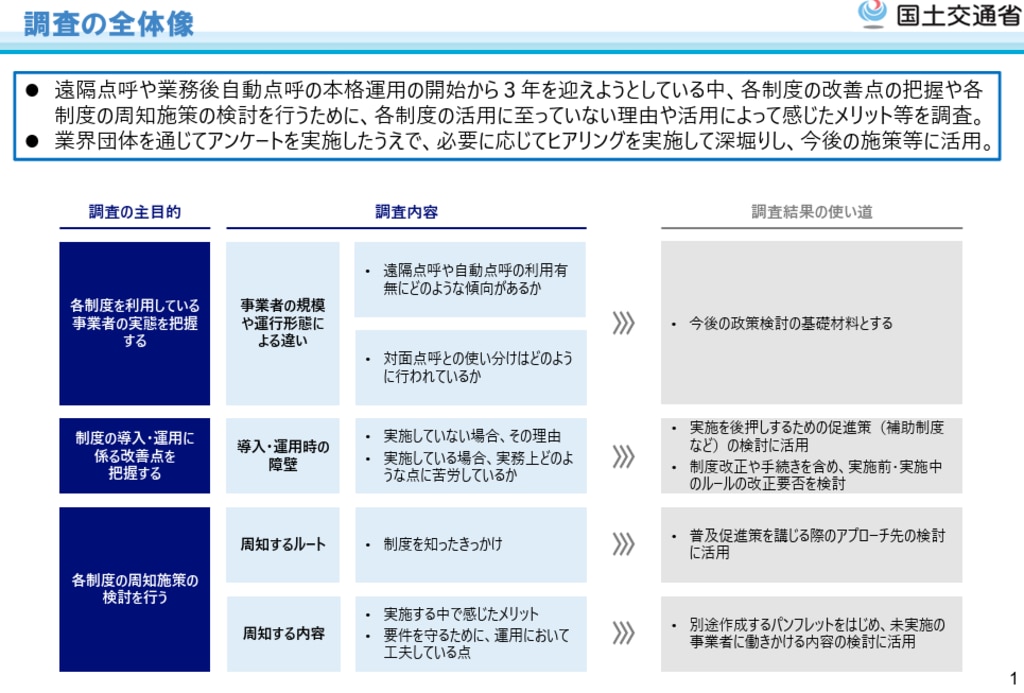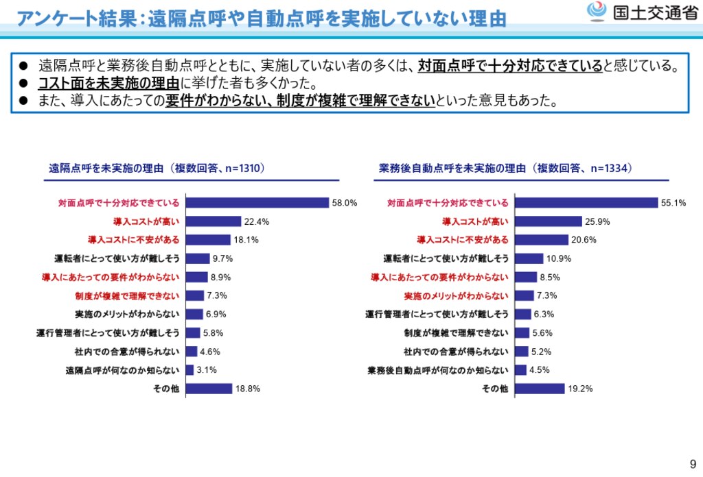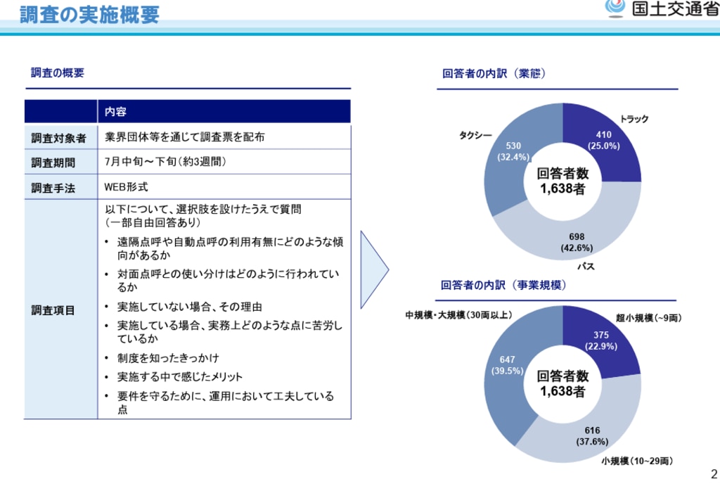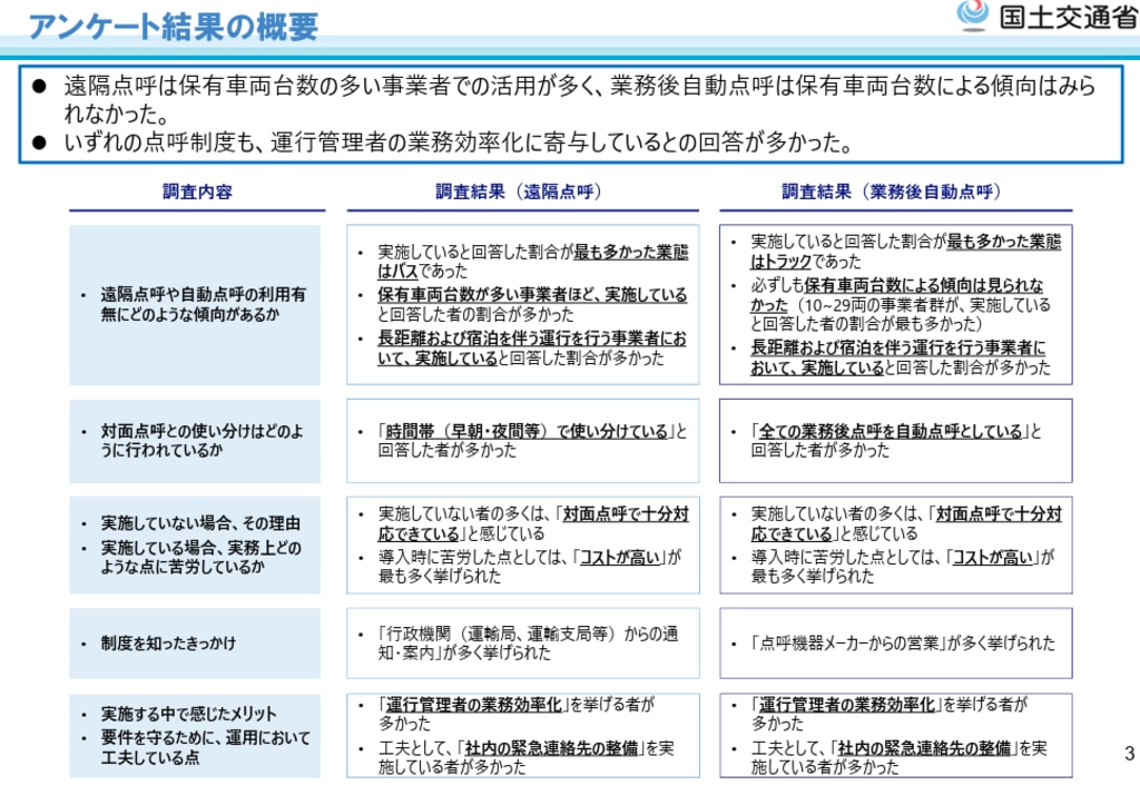 同一事業者内遠隔点呼及び業務後自動点呼の実施状況に係る実態調査