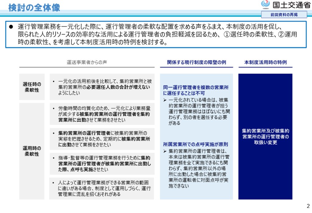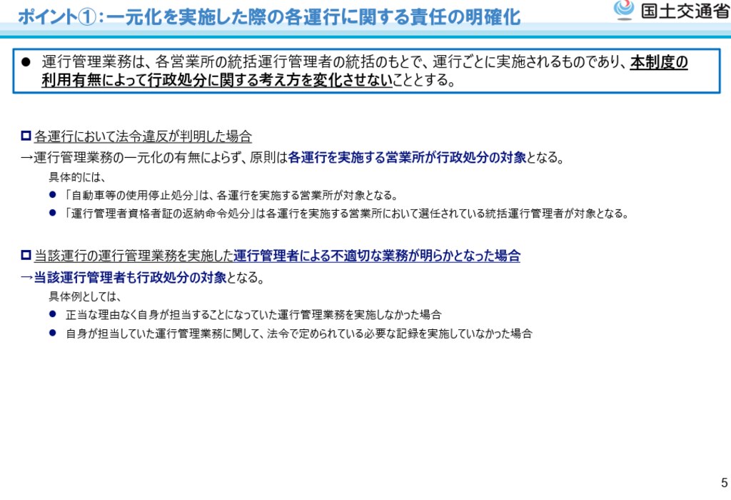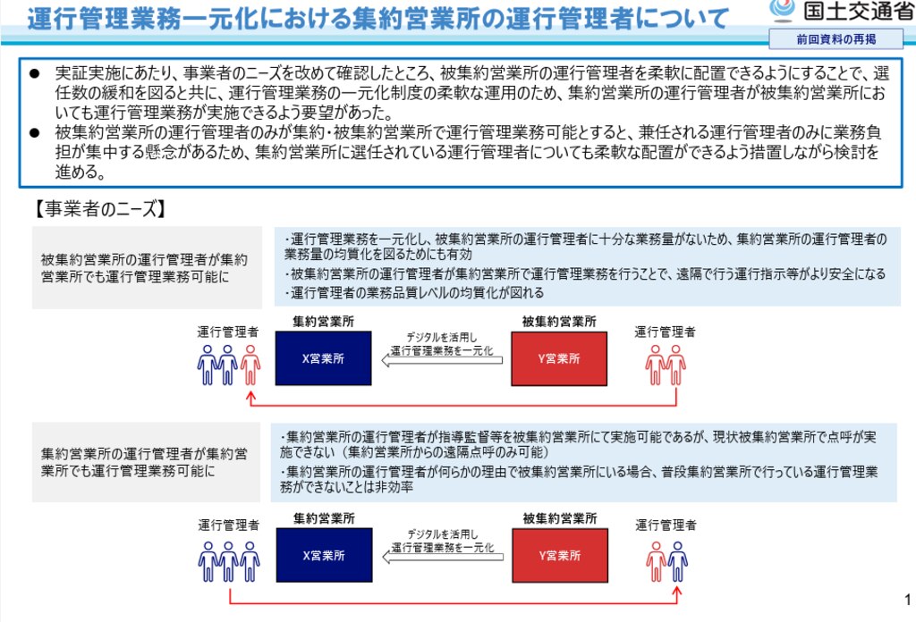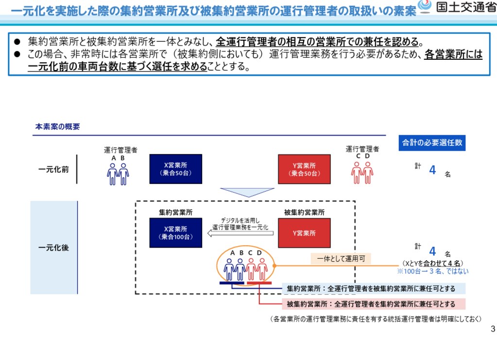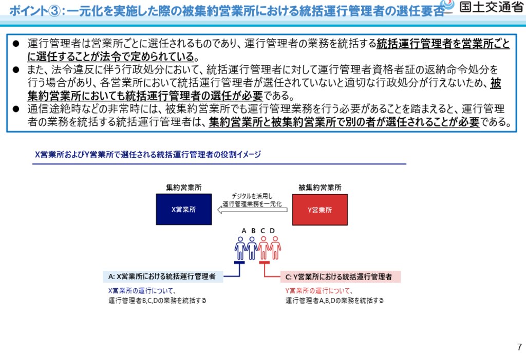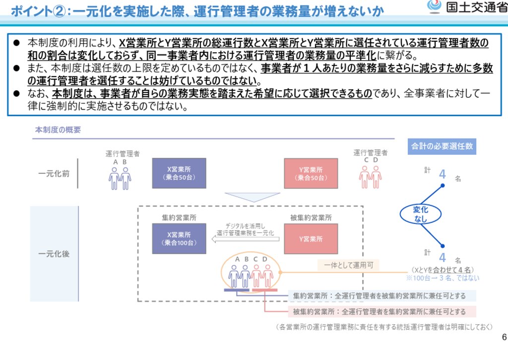 運行管理業務の一元化における運行管理者選任数の考え方について