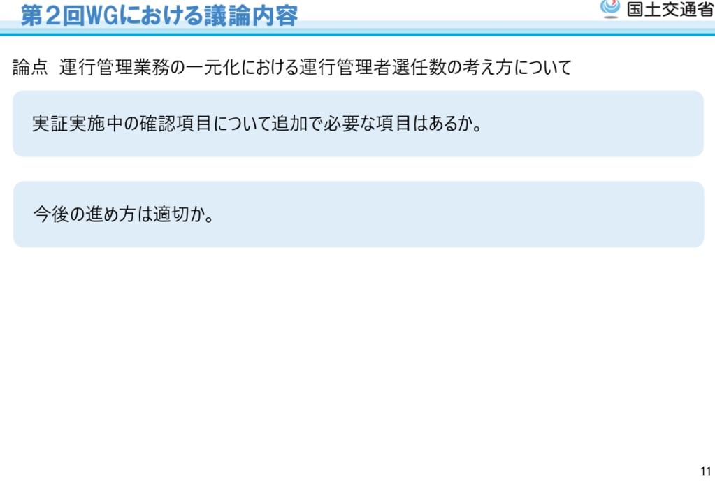 1年議論して、運行管理者の負担の公平性担保? 程度の結果?