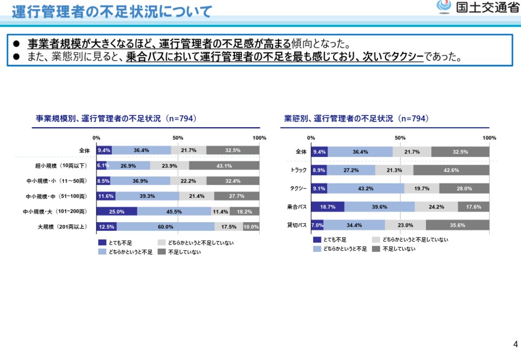 ➢ 運行管理者を「とても不足している」と感じているのは全体の9.4%であった。