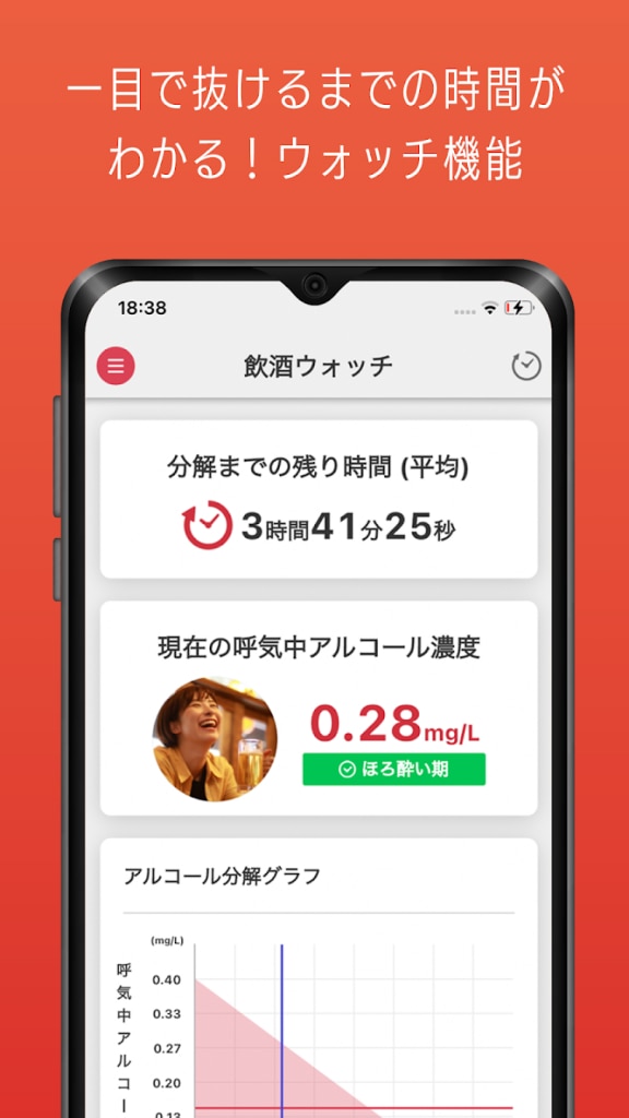 次に、分解時間シミュレーションです。呼気アルコール濃度換算もします。