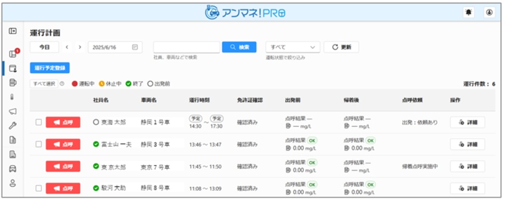 安全運転管理者さんの業務がスムーズに、運転手さんの業務がスムーズに。「毎日やるのって面倒だよね」「いろいろあると負担だよね」をいつのまにか習慣化できる。アンマネ!PROは単なる点呼をラクにするだけにとどまらず、働く方々の気持ちよい毎日を応援していきたいと思います!