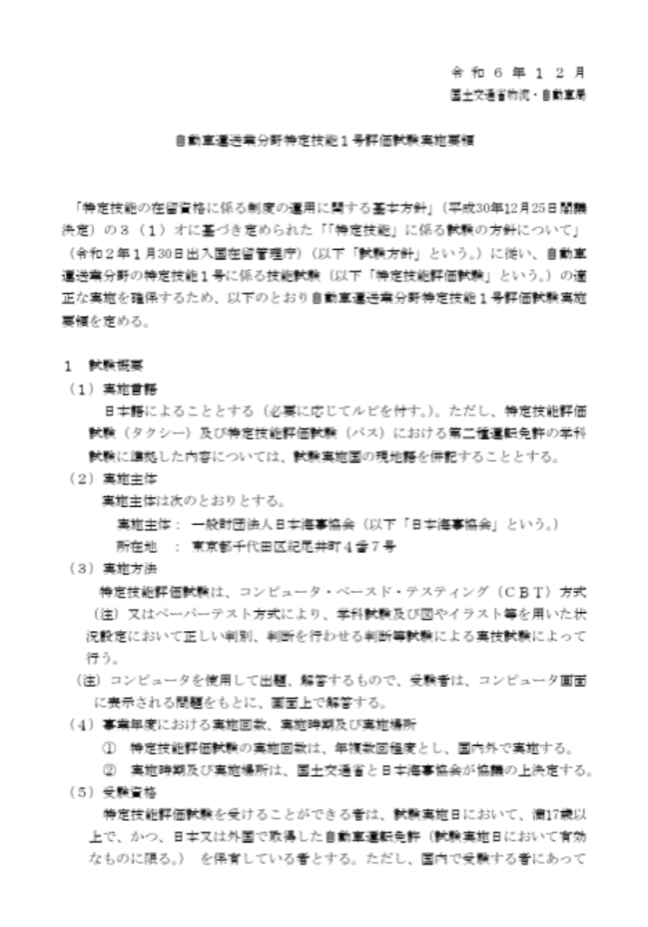 日本語によることとする(必要に応じてルビを付す。)。ただし、特定技能評価試験(タクシー)及び特定技能評価試験(バス)における第二種運転免許の学科試験に準拠した内容については、試験実施国の現地語を併記することとする