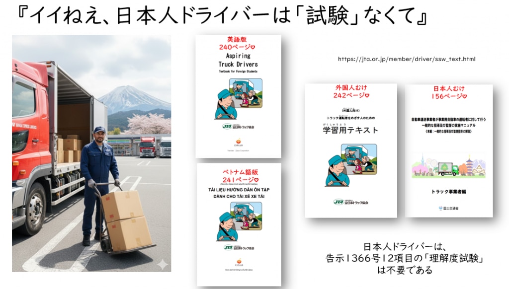 日本人のトラックドライバーは、社内で教育を受ける義務はありますが、「試験」はありません。
