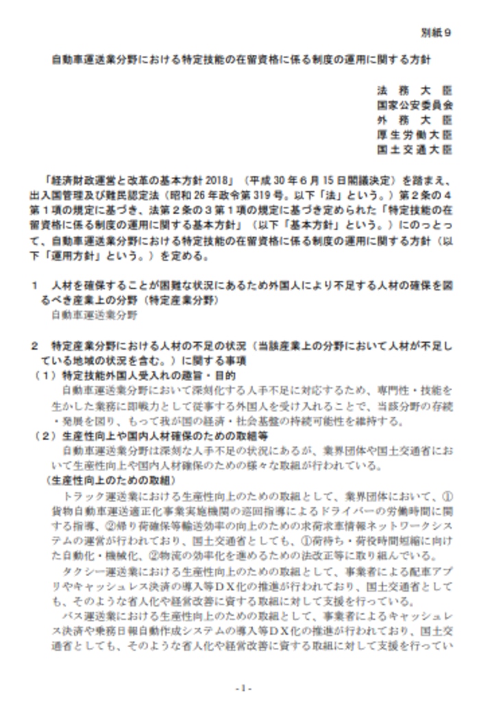 テキストの出典は、全日本トラック協会 外国人特定技能 特設ページ より