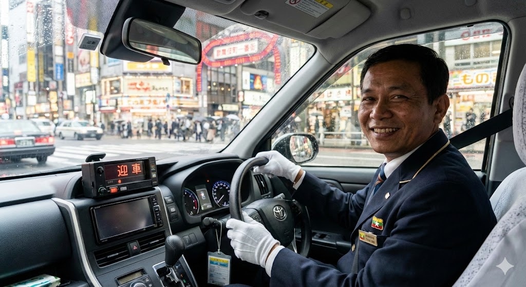 外国人トラックドライバー、外国人タクシードライバー、外国人バスドライバー、制度開始から1年たって、合格者は何人? というデータを伝えたセミナーの翌日、ミャンマー人のタクシードライバーと早速会っちゃった件。