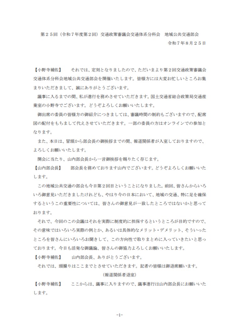 令和7年度第2回(第25回)交通政策審議会交通体系分科会地域公共交通部会(2025年8月25日)