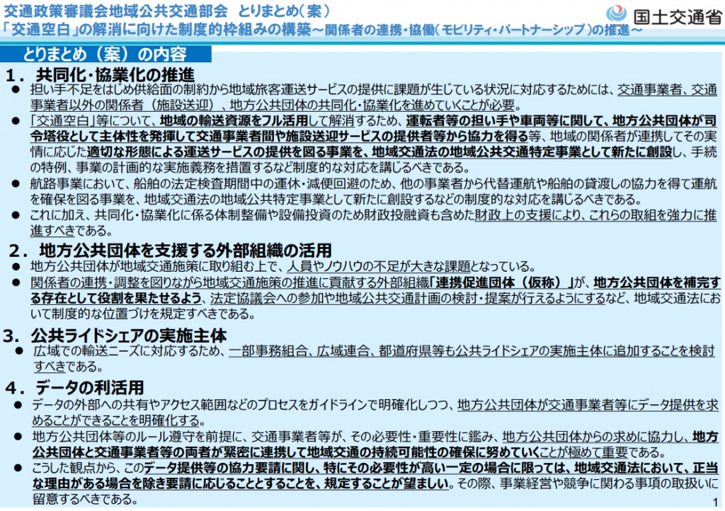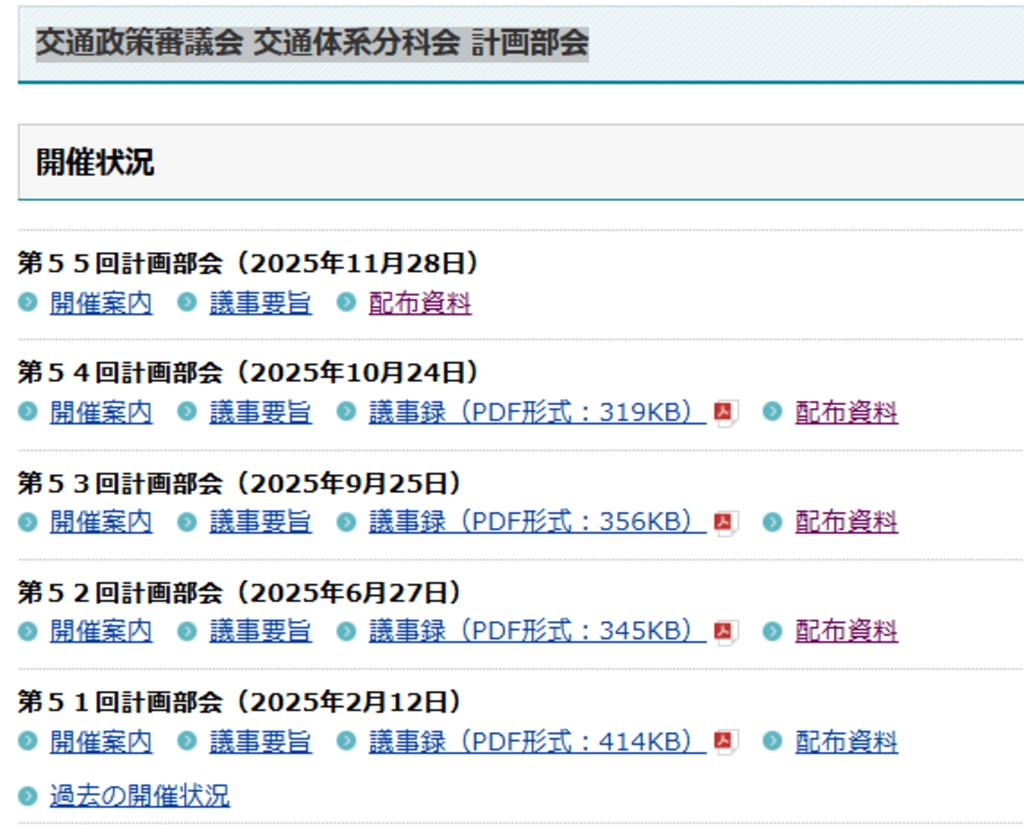 今年度の交通政策審議会の公開資料をいちど整理しておきます。