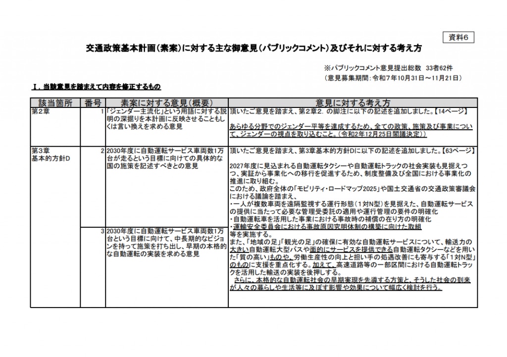 同時に審議が行われていた、社会資本整備計画(第六次)もパブリックコメント実施。