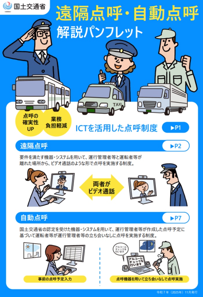オフィシャル自動点呼・遠隔点呼パンフレット【国土交通省版】、やっと出てきた。これ1枚ですべてがわかる?ハズ。