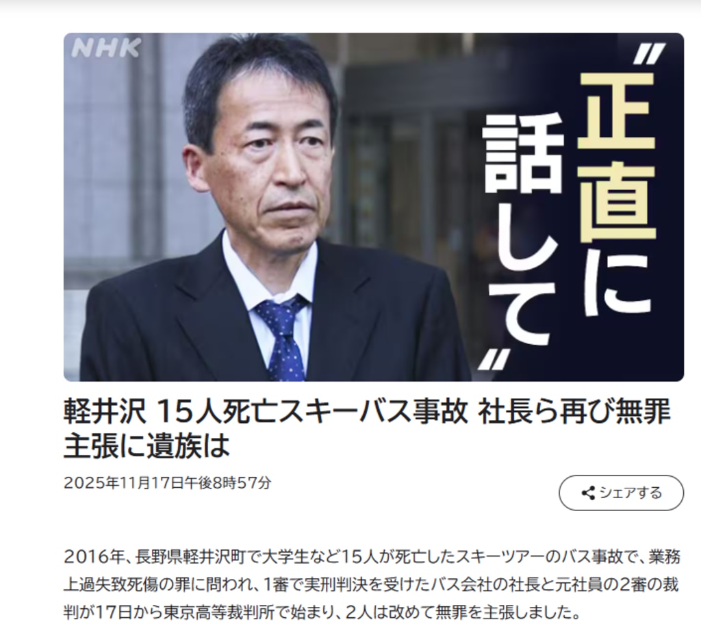 15名死亡の軽井沢スキーツアーバス事故から10年。どうしてバスは暴走した? そしてバスは暴走した。そして先月、元運行管理者らは無罪を主張。風化をさせない方法は控訴審で苦しむ遺族の報道だけなのか?
