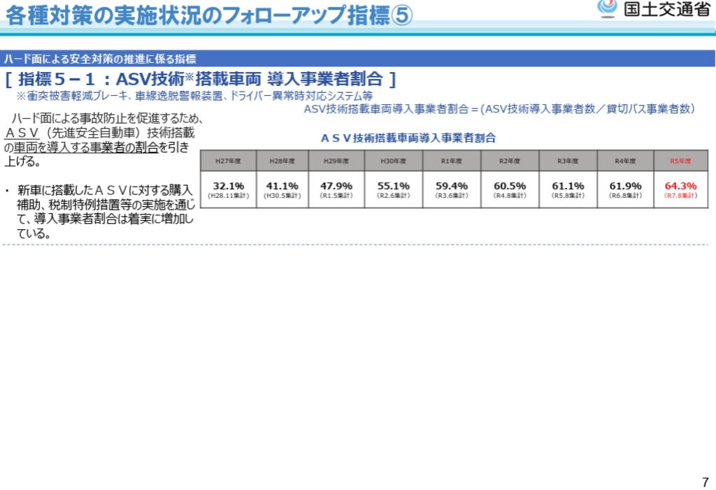 事故調査報告書の再発防止でかならず推奨されるのに。予算消化に関する情報を見たことがない。誰も知らない? ASV施策状況は。公表できない理由でもあるのだろうか?