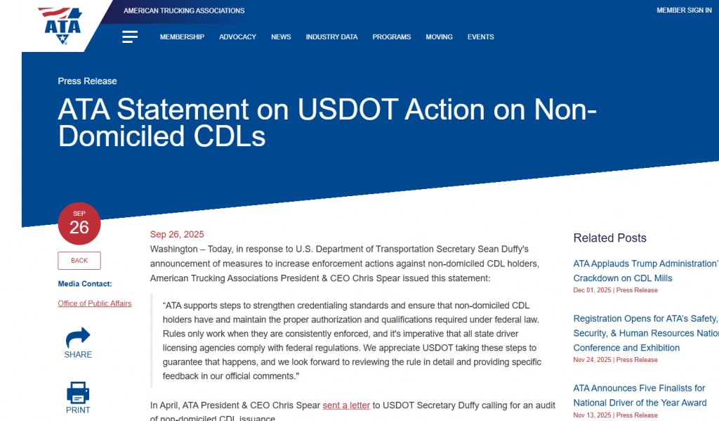 In September , USDOT released they are going to increase enforcement actions against non-domiciled CDL holders.