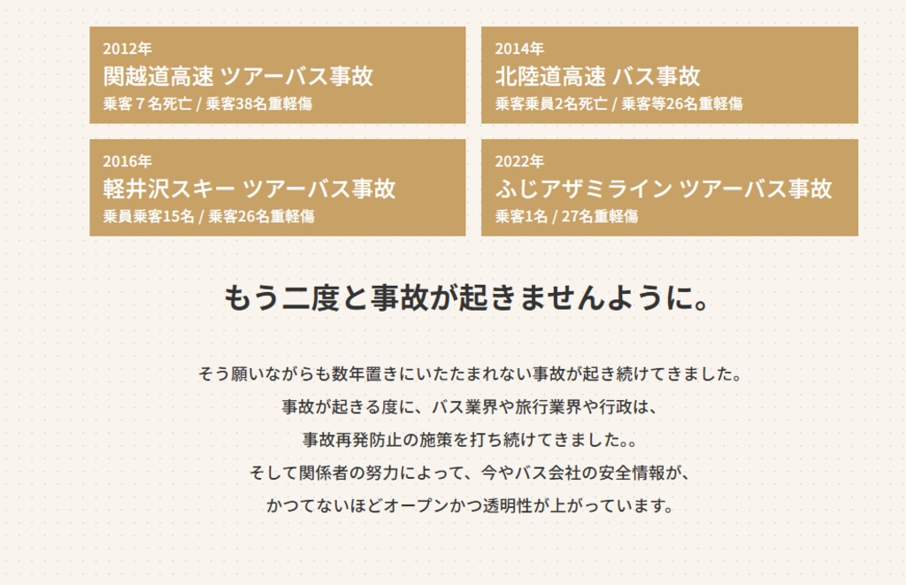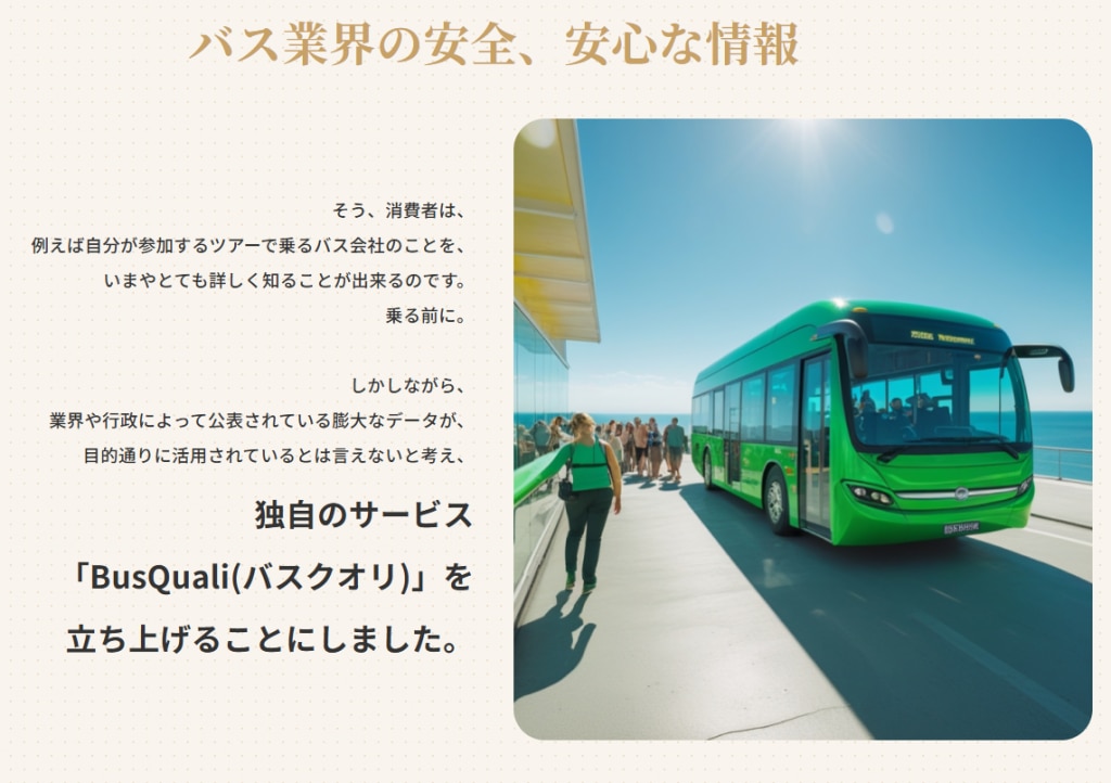 そのうちのひとつが、「ツアーに行く消費者が自分が乗るバス会社が本当に安全かどうかをわかるようにする」というものです。