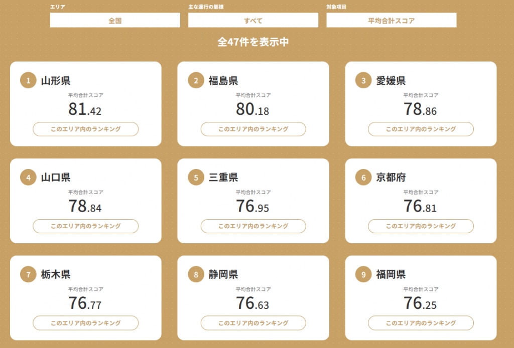 かならずしも、都道府県でスコア1位だからといって全国1位スコアとは限りません。