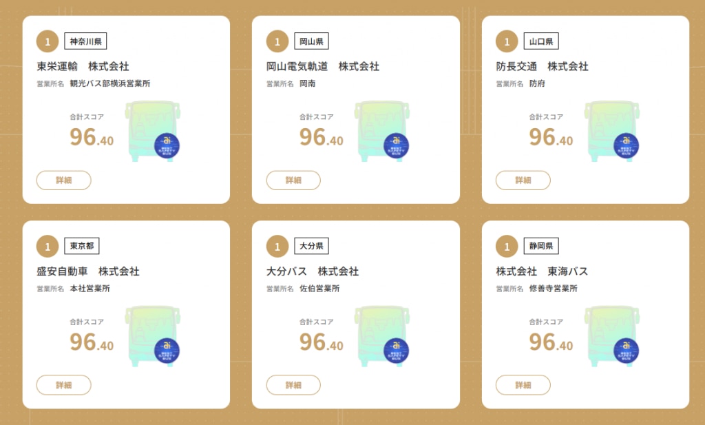 なお、参考までに全国1位スコア96.40 同率1位は20事業所あります。うち6社をトップページに表示しています。