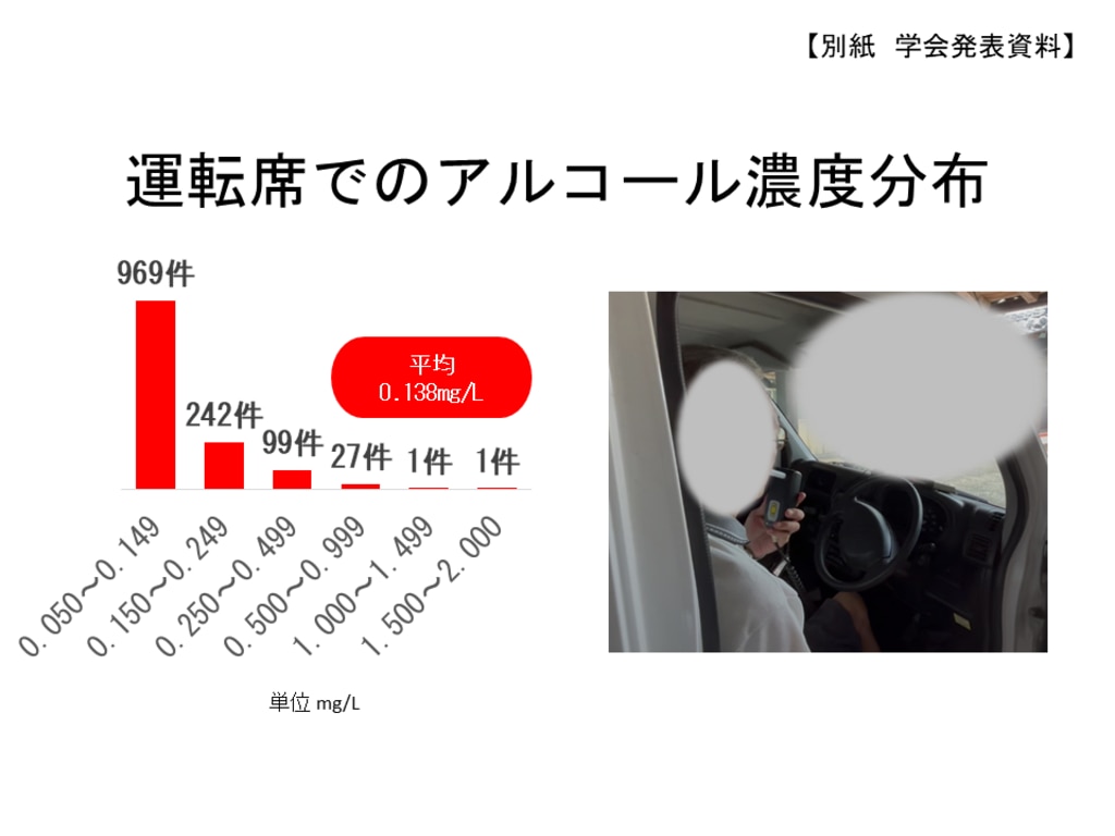 2025年9月、アルコール関連問題学会で、個人がアルコール・インターロック装着した際の飲酒行動の調査データを公表しました。アルコール・インターロックはデジタルデータを保存していますので、飲酒運転行動のエビデンスとして有用であることを、調査データをもって訴えました。(別紙学会資料)