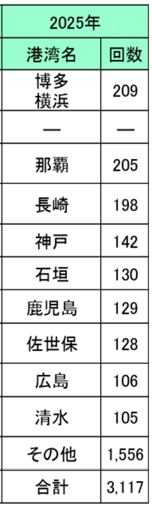 クルーズ船寄港数、どんだけ?
