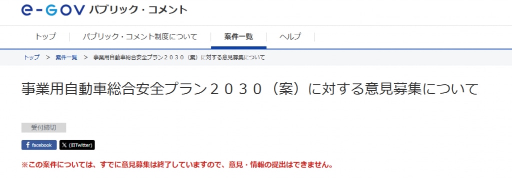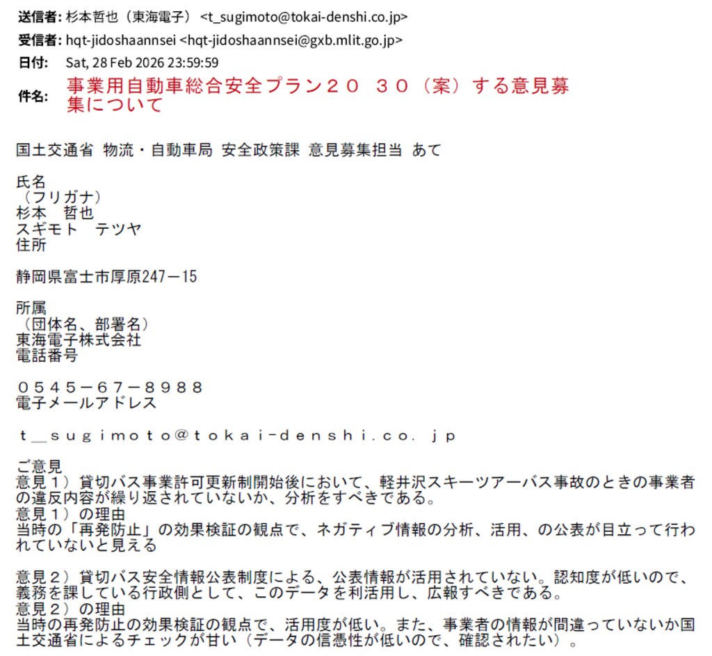 ”事業用自動車総合安全プラン20 30(案)する意見募集について ”と入れて・・・