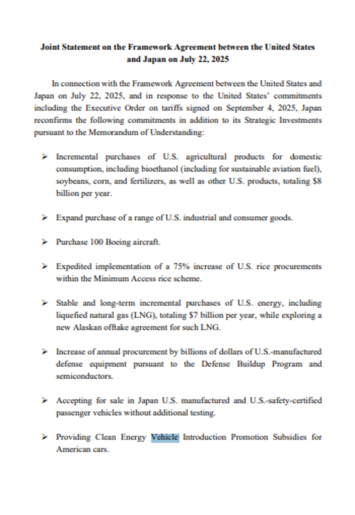 Accepting for sale in Japan US manufactured and U.S.-safety-certified passenger vehicles without additional testing.