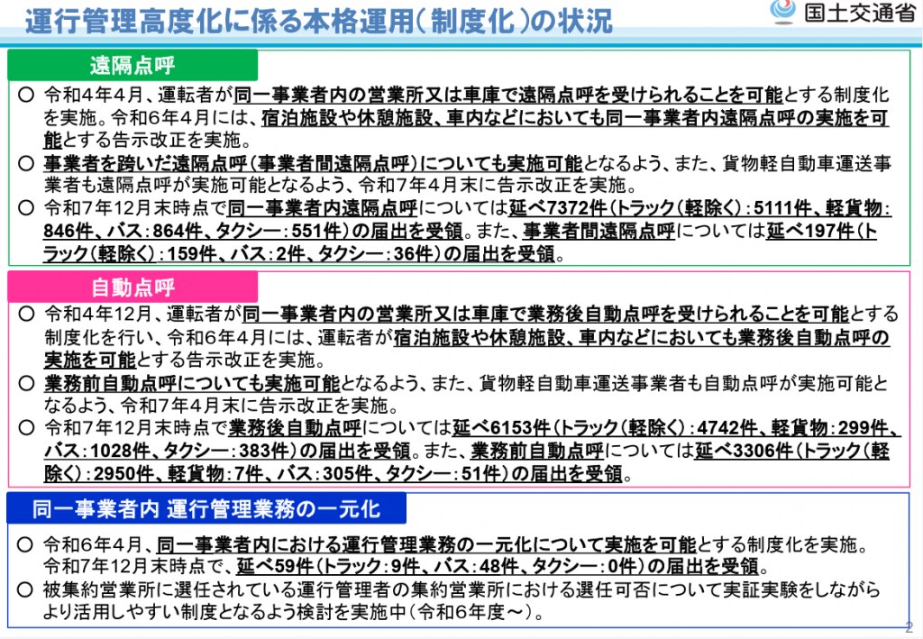 「令和8年度以降の取組について」内「運行管理高度化に係る本格運用(制度化)の状況」https://www.mlit.go.jp/jidosha/content/001982664.pdf
